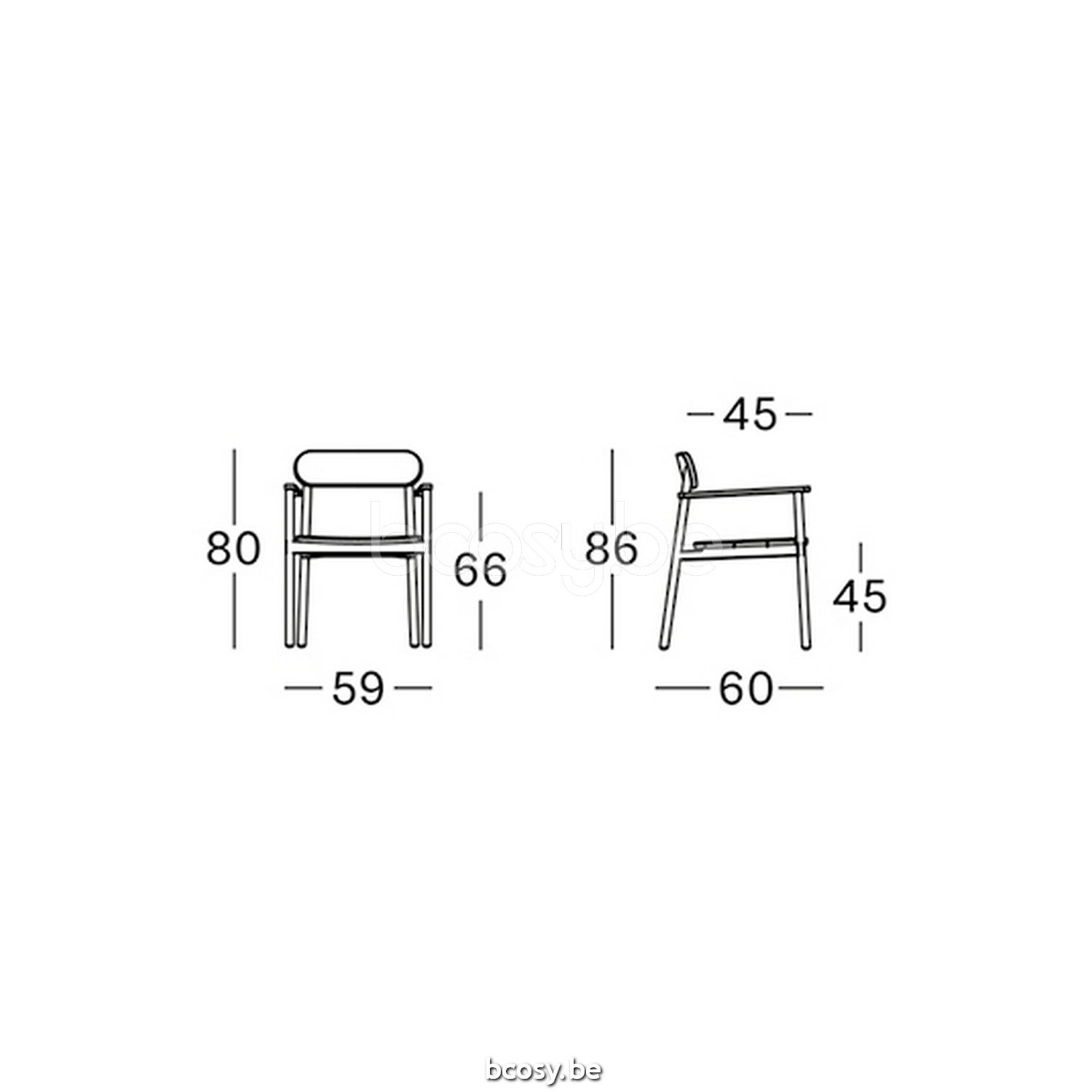 Afmetingen/Dimensions/Dimensionen: L=59 cm B=60 cm H=80 cm SH=45 cm AH=66 cm SD=45 cm