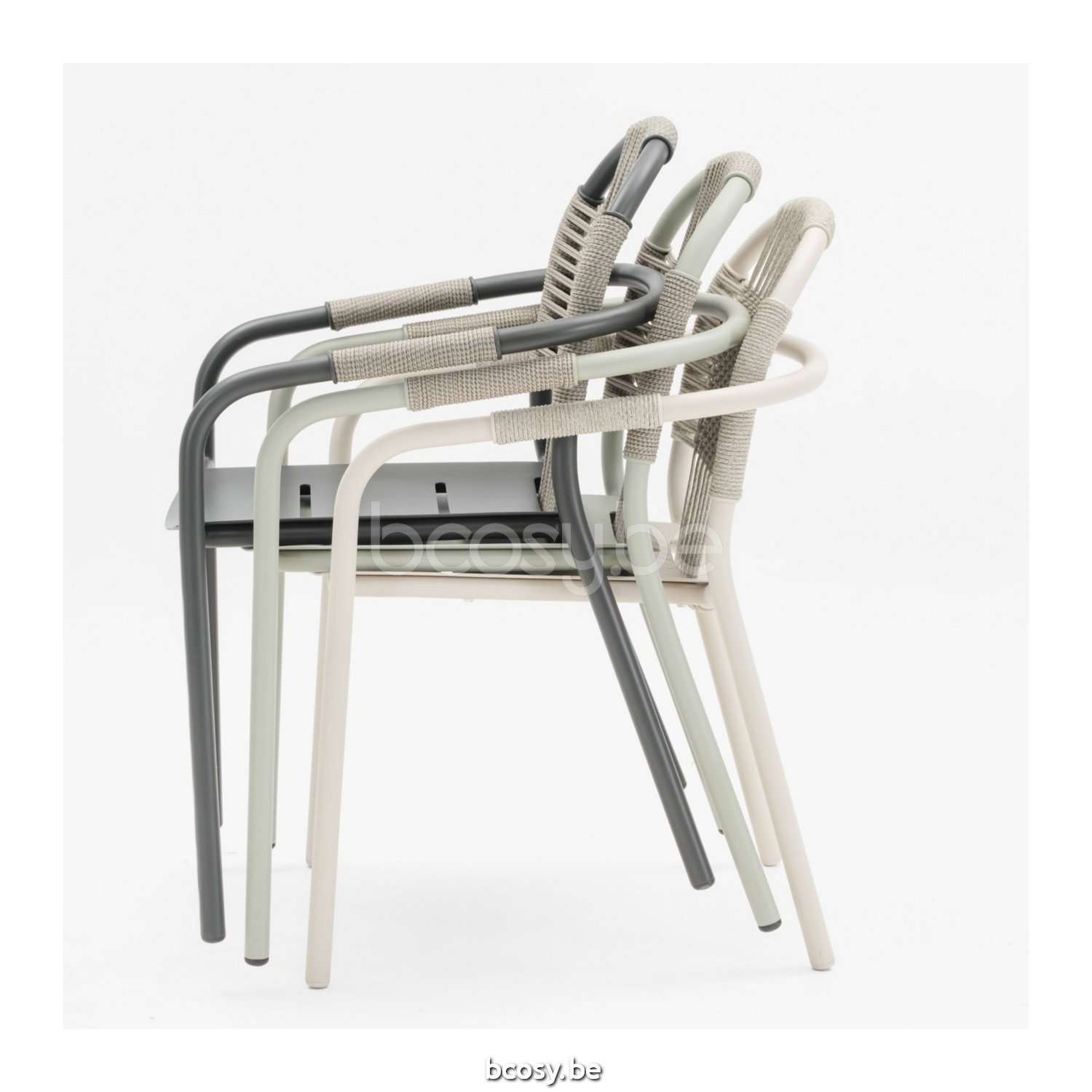 Matériel: Corde en polypropylène sur un cadre en aluminium peint par poudrage. Empilable pour max. 4 chaises. Manipuler avec précaution pour éviter tout dommage.