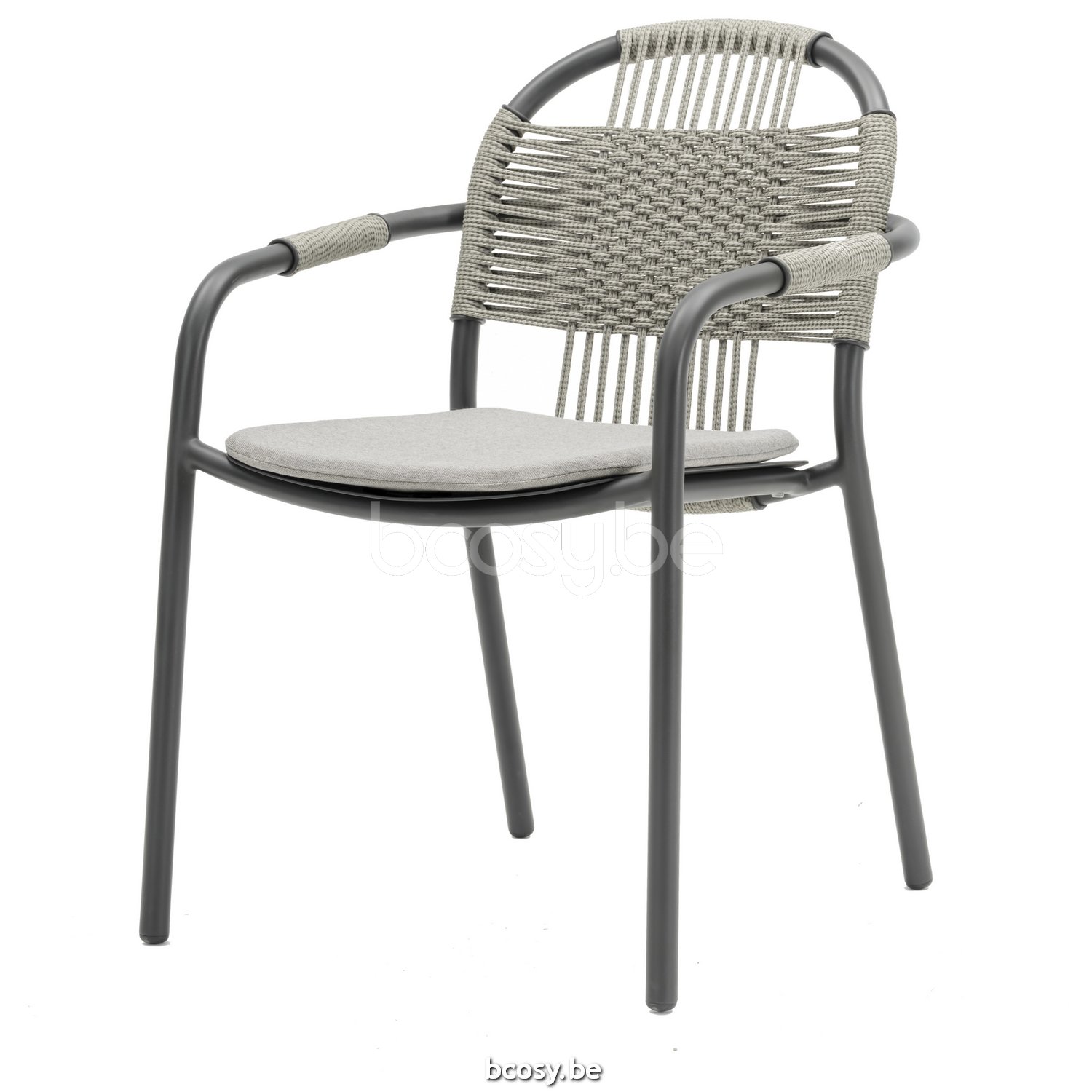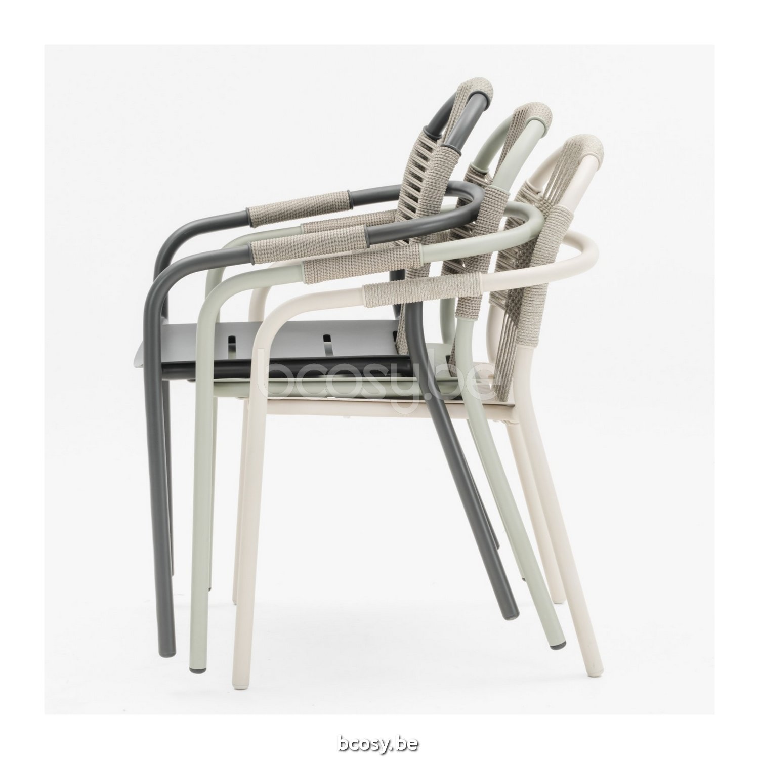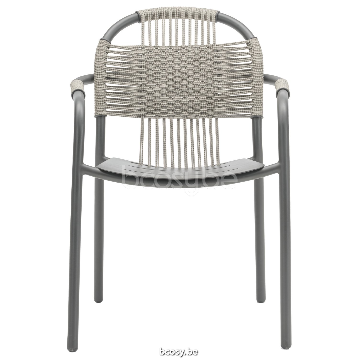 Material: Polypropylene rope on a powder coated aluminium frame. Stackable for max. 4 chairs. Handle with care to avoid damage.