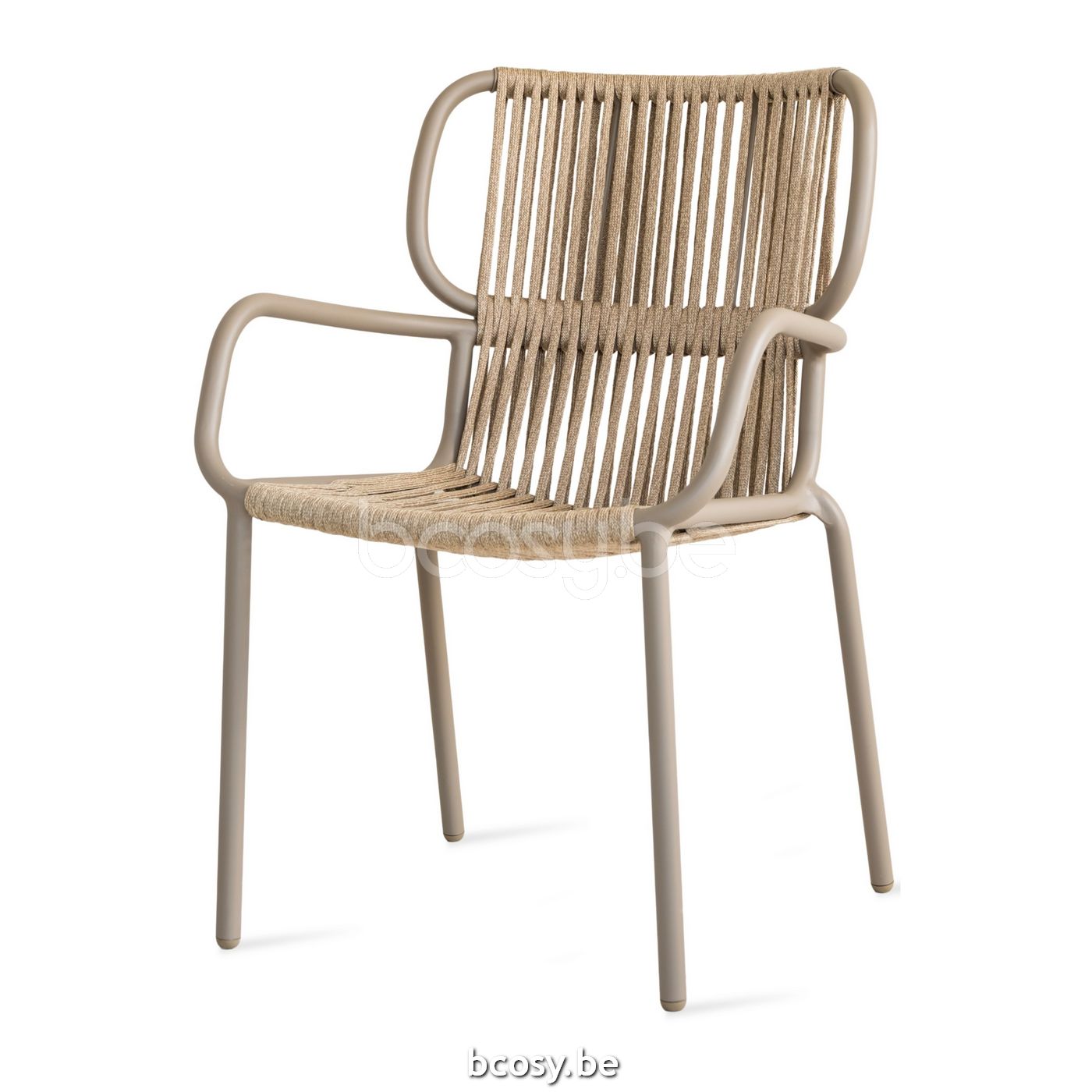 Material: Flat polypropylene rope on a powder coated aluminium frame. Nylon glides. Stackable with care (max. 6 chairs)