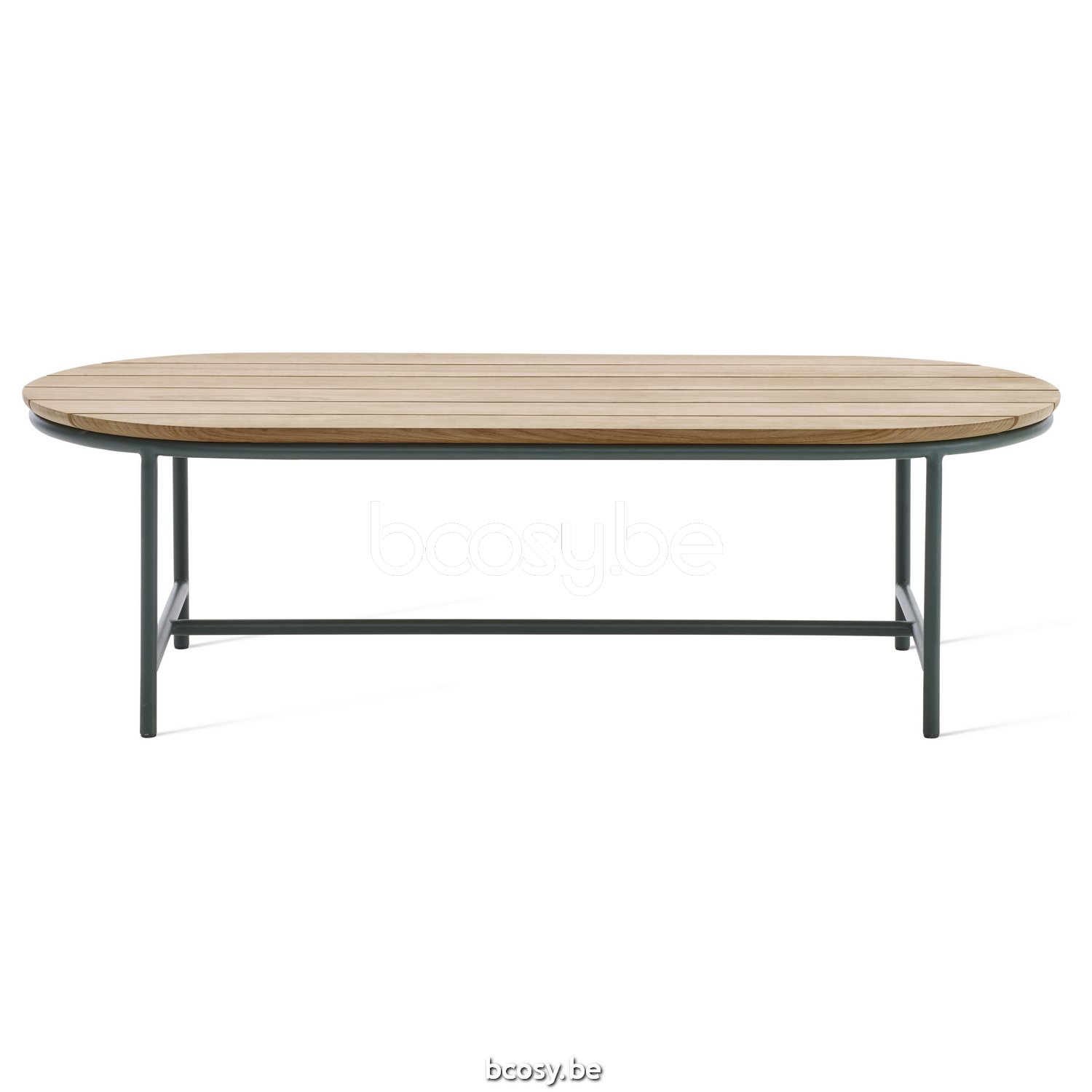 English: Vincent Sheppard Wicked Garden Coffee Table 123x55 Black Aluminium frame Untreated Teak top