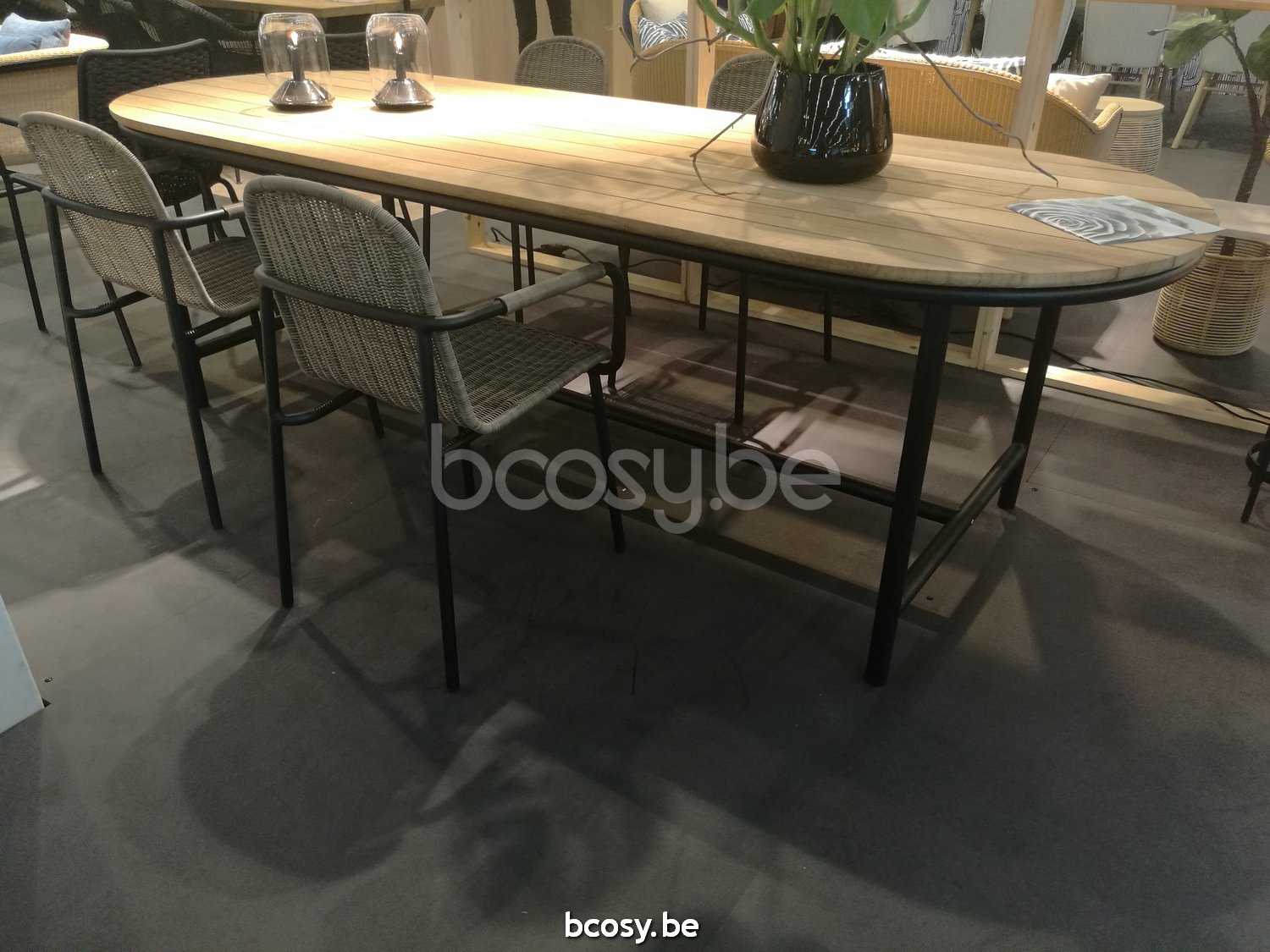 English: Vincent Sheppard Wicked Garden Dining Table 250x90 Black Aluminium frame Untreated Teak top