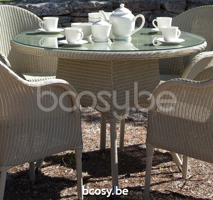 Material: Outdoor treated Lloyd Loom weave on an aluminium frame. Should be stored indoors during humid and cold weather. Optional glass top available.