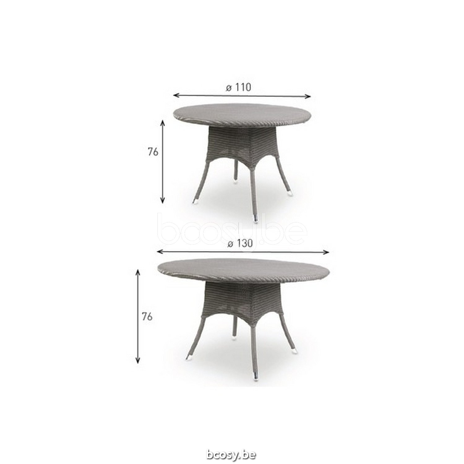 Afmetingen/Dimensions/Dimensionen: L=130 cm B=130 cm H=76 cm