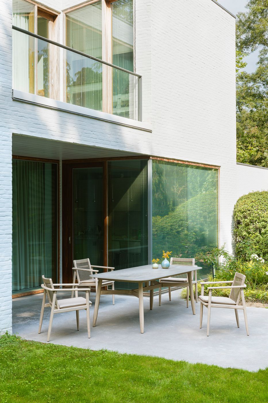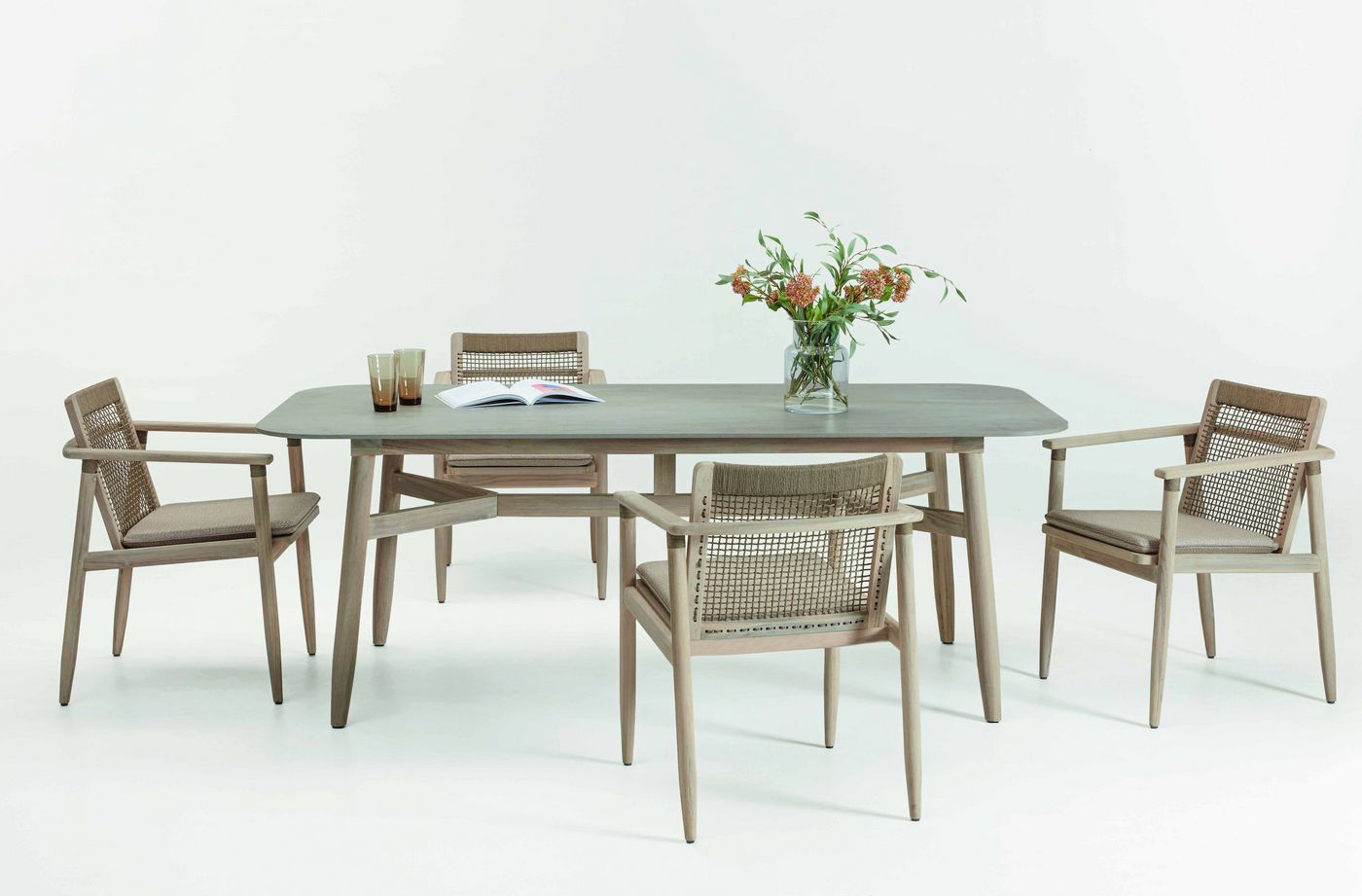 Deutsch: Vincent Sheppard David Gartentisch 210x100 Rahmen aus Gealtert Teakholz Tischplatte Flint Keramik