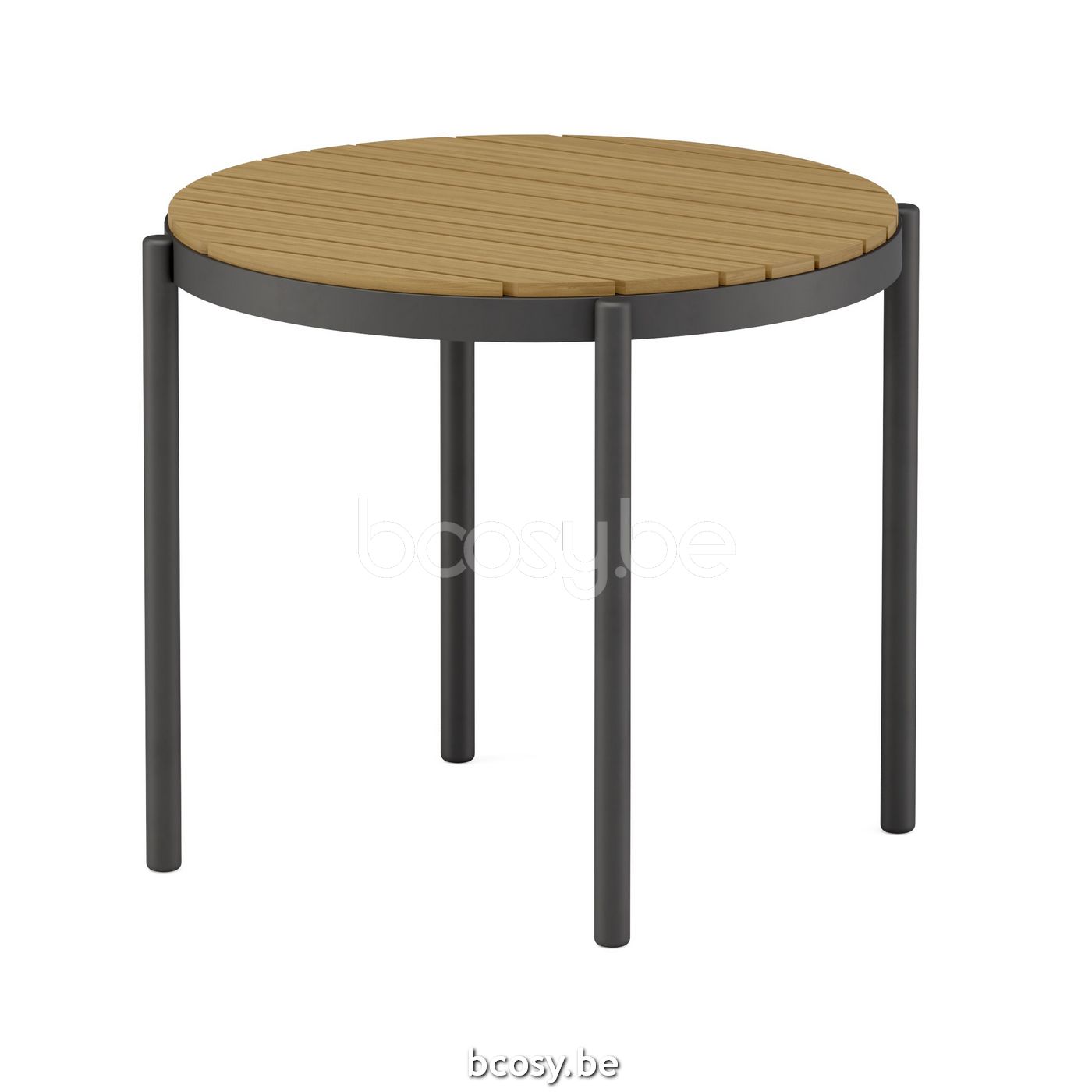 Jardinico VOLTE Ronde Bijzettafel Vernestbaar Ø50 Antraciet-charcoal-charcola Gepoederlakt Aluminium Teak