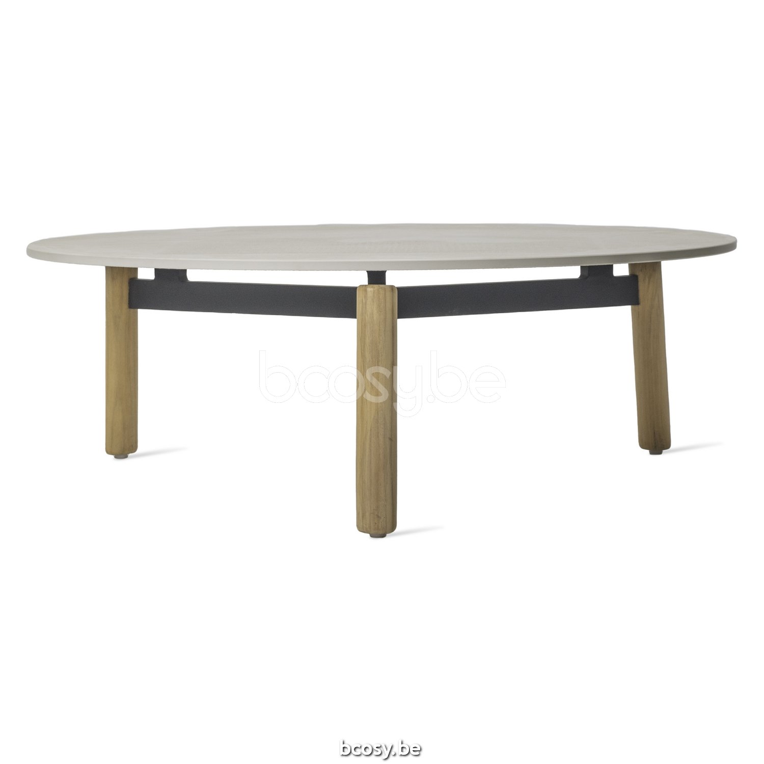 English: Vincent Sheppard Lento Round garden Coffee Table Dia 90 Untreated Teak frame Portland Ceramic top
