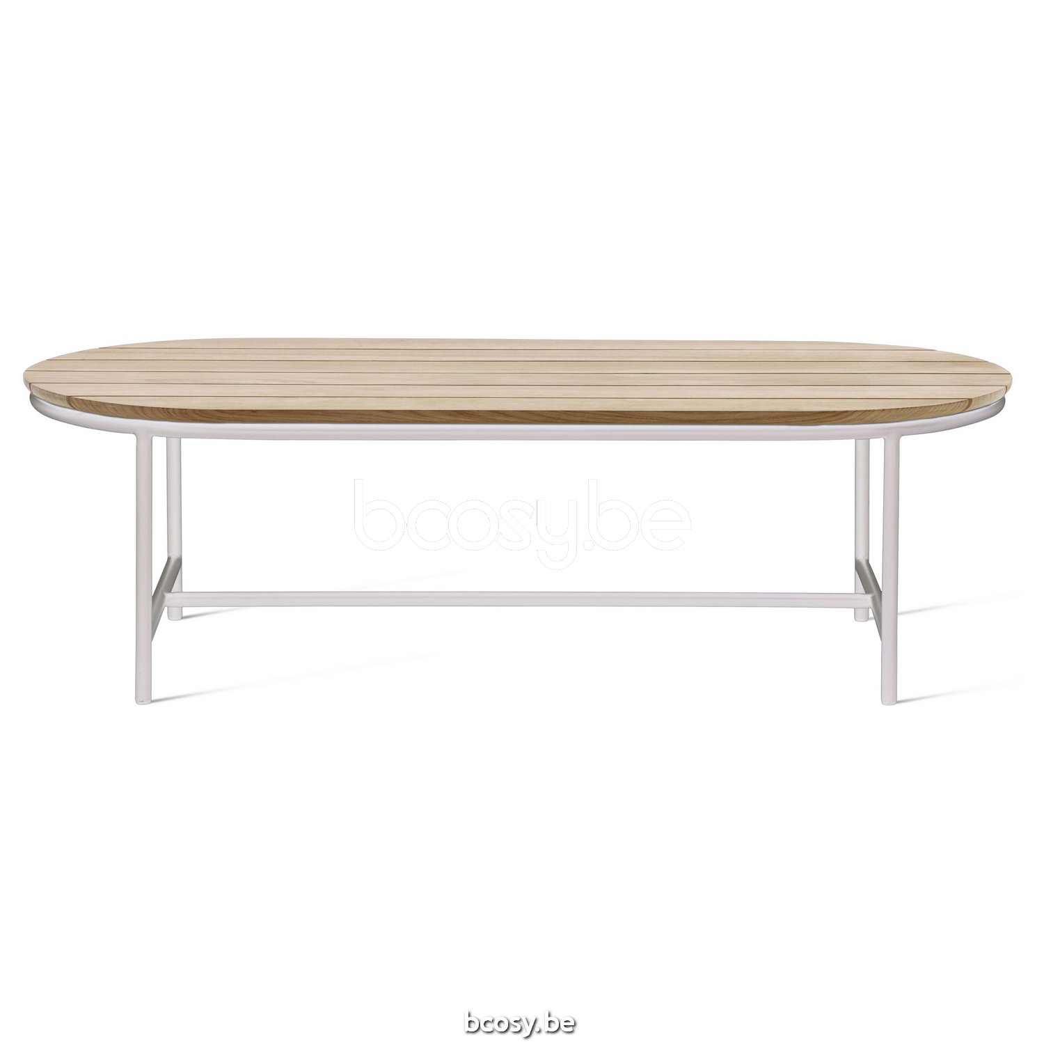 English: Vincent Sheppard Wicked Garden Coffee Table 123x55 White Aluminium frame Untreated Teak top