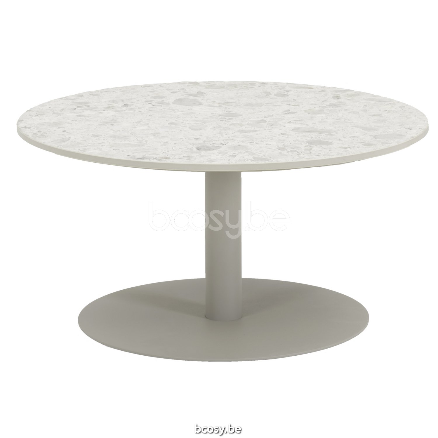 English: Vincent Sheppard Kodo Round Garden Coffee Table Dia 68 Dune White Aluminium frame Shards Ceramic top 12mm