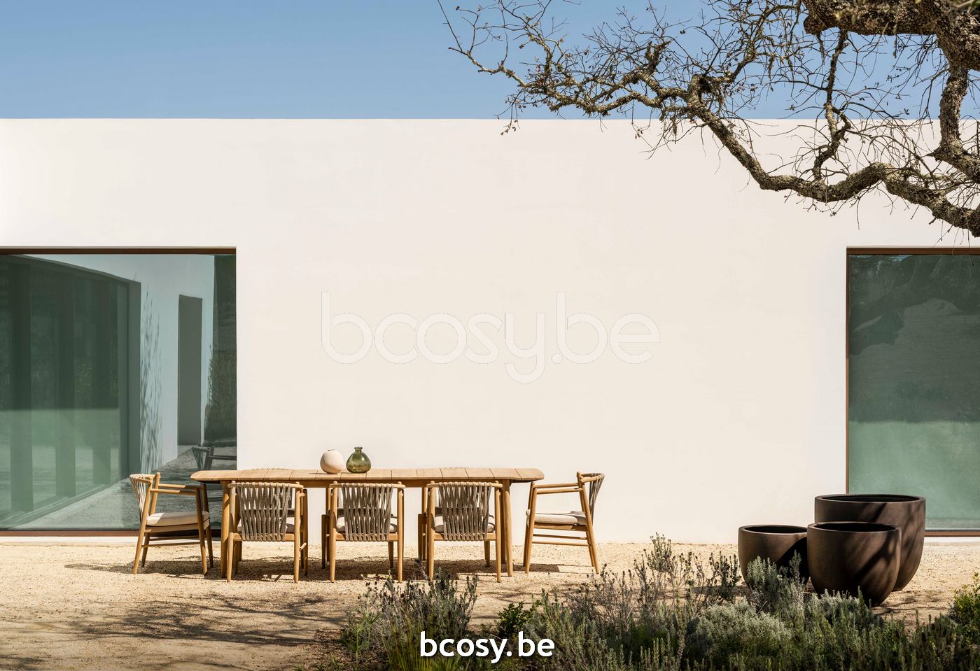Materiaal: Teak frame en tafelblad in massief teakhout.