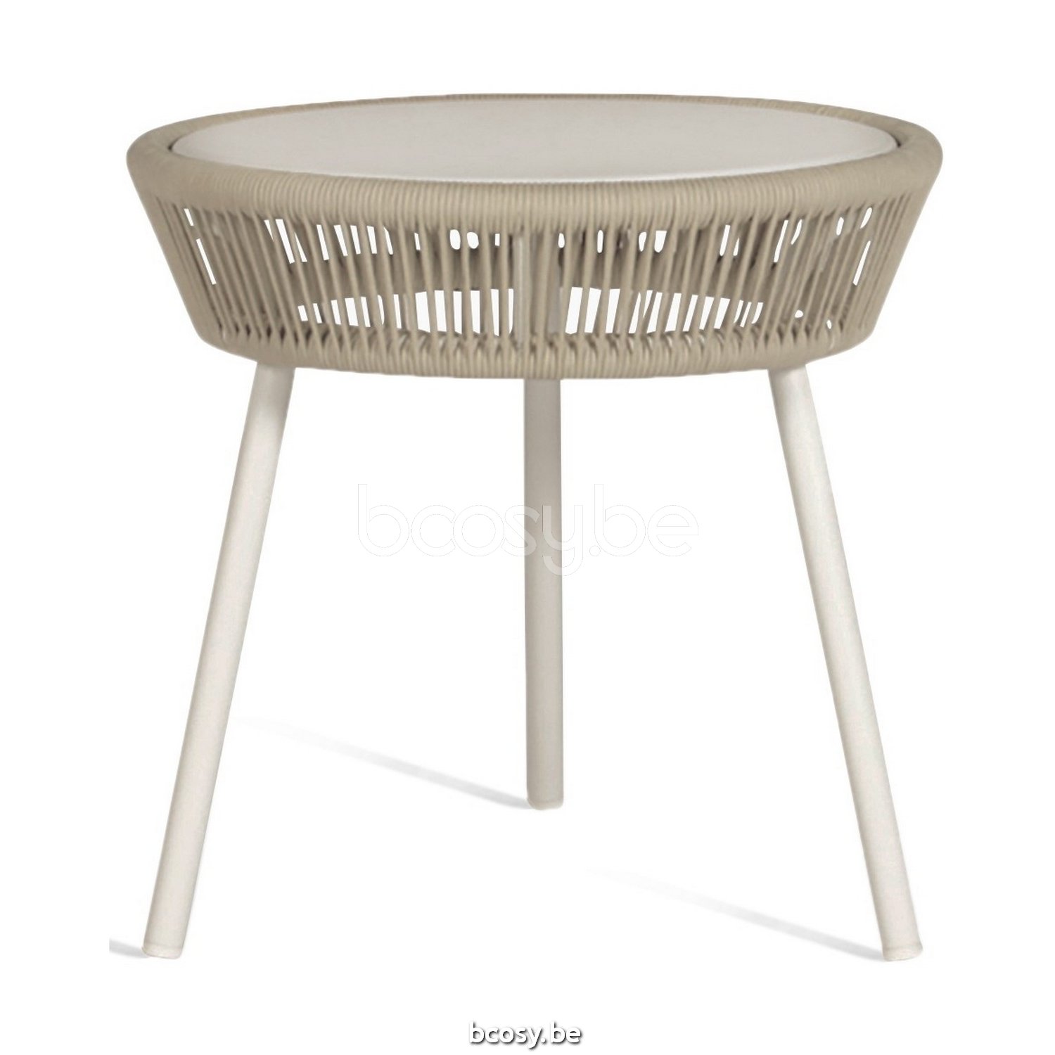 Vincent Sheppard LOOP Beistelltisch Loop Runder Garten Beistelltisch Rahmen aus Dune Weiß Aluminium Dune Weiß Seil Polypropylen