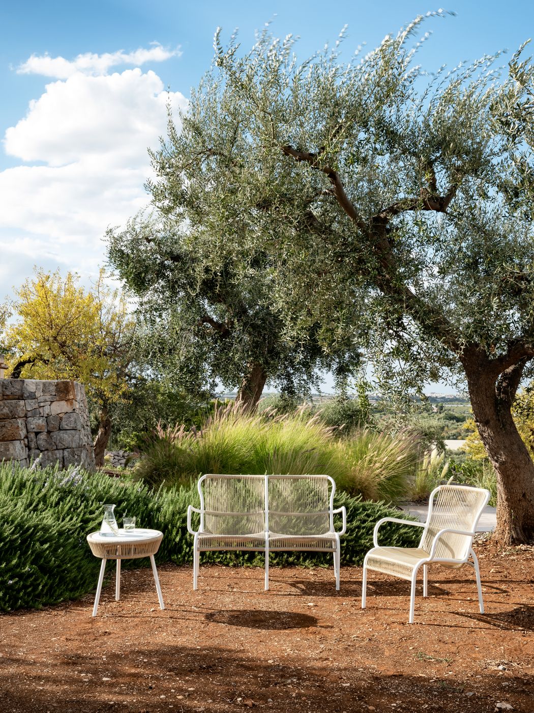Material: Polypropylene rope on a powder coated aluminium frame (Dune White, Taupe, Fossil Grey, Moss, Terracotta and Rust).