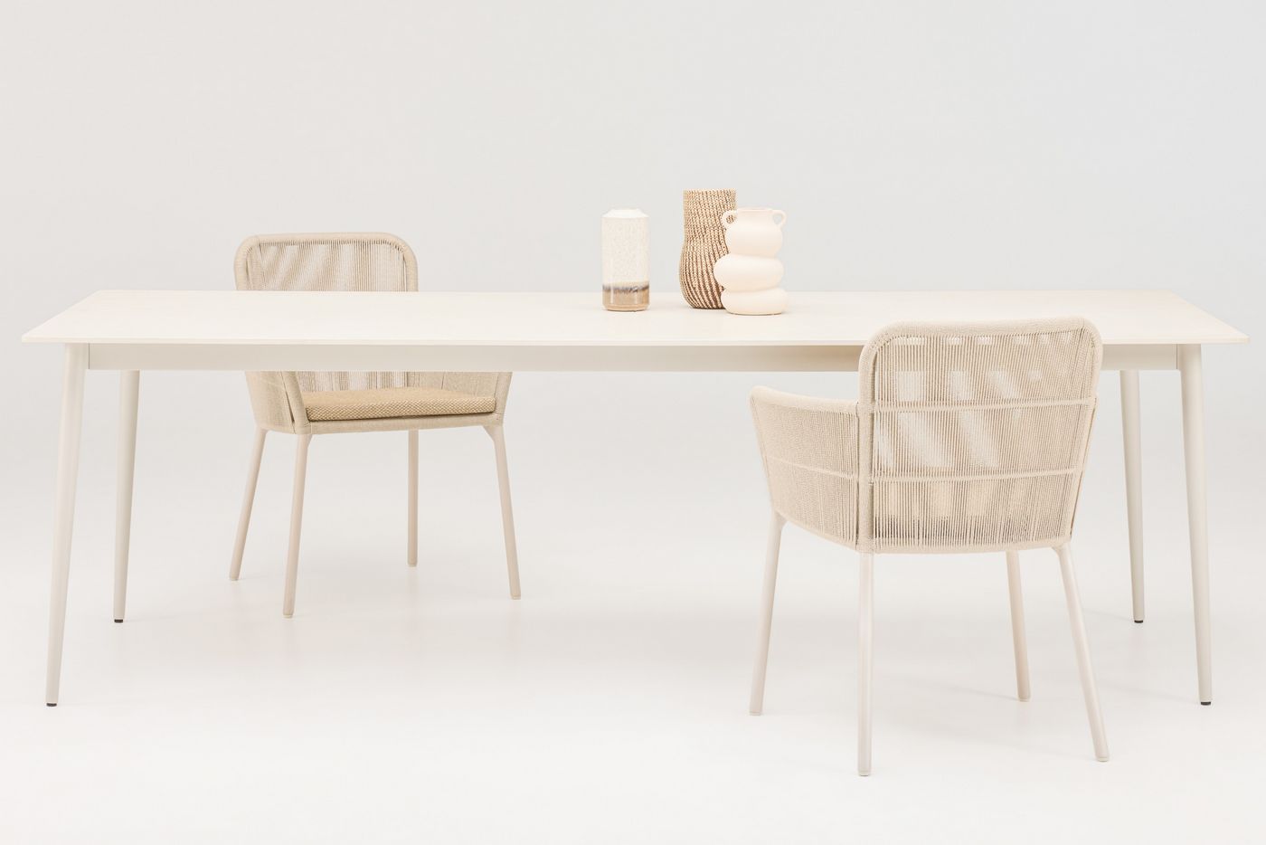 Vincent Sheppard Max Tuintafel Teak Plank 240x100 Dune White Aluminium frame Portland Keramiek Tafelblad. Vincent Sheppard Maks Tuintafel Teak Plank 240x100 Dune White Aluminium frame Portland Keramiek Tafelblad