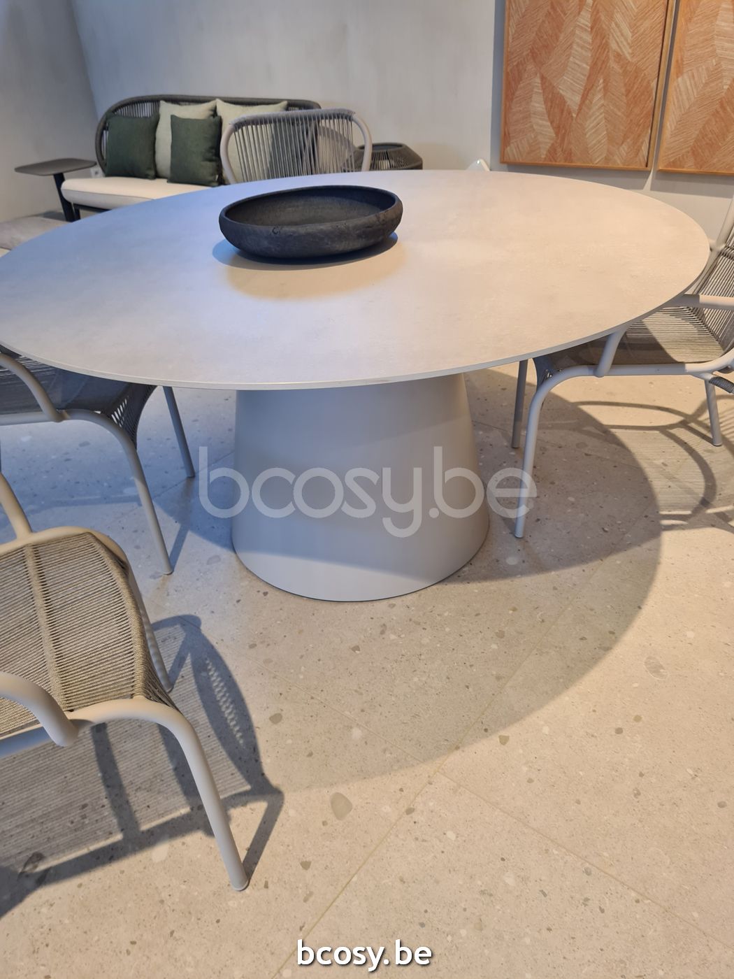 English: Vincent Sheppard Sandro Round Garden Dining Table Round Dune White Aluminium frame Shards Ceramic top 12mm