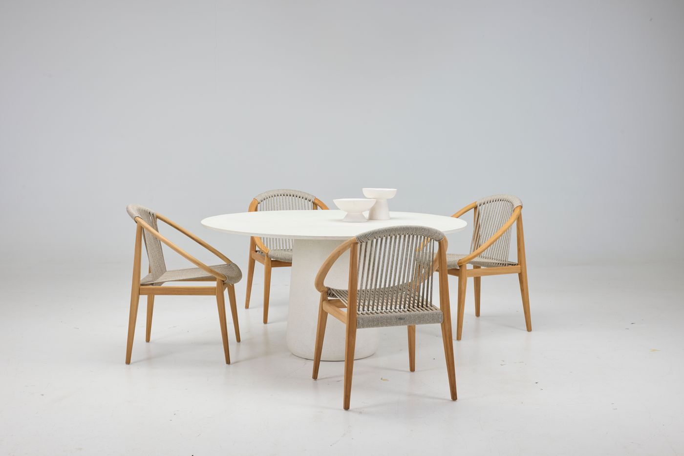 Material: Dining table in speckled cement. Rubber pad on base.