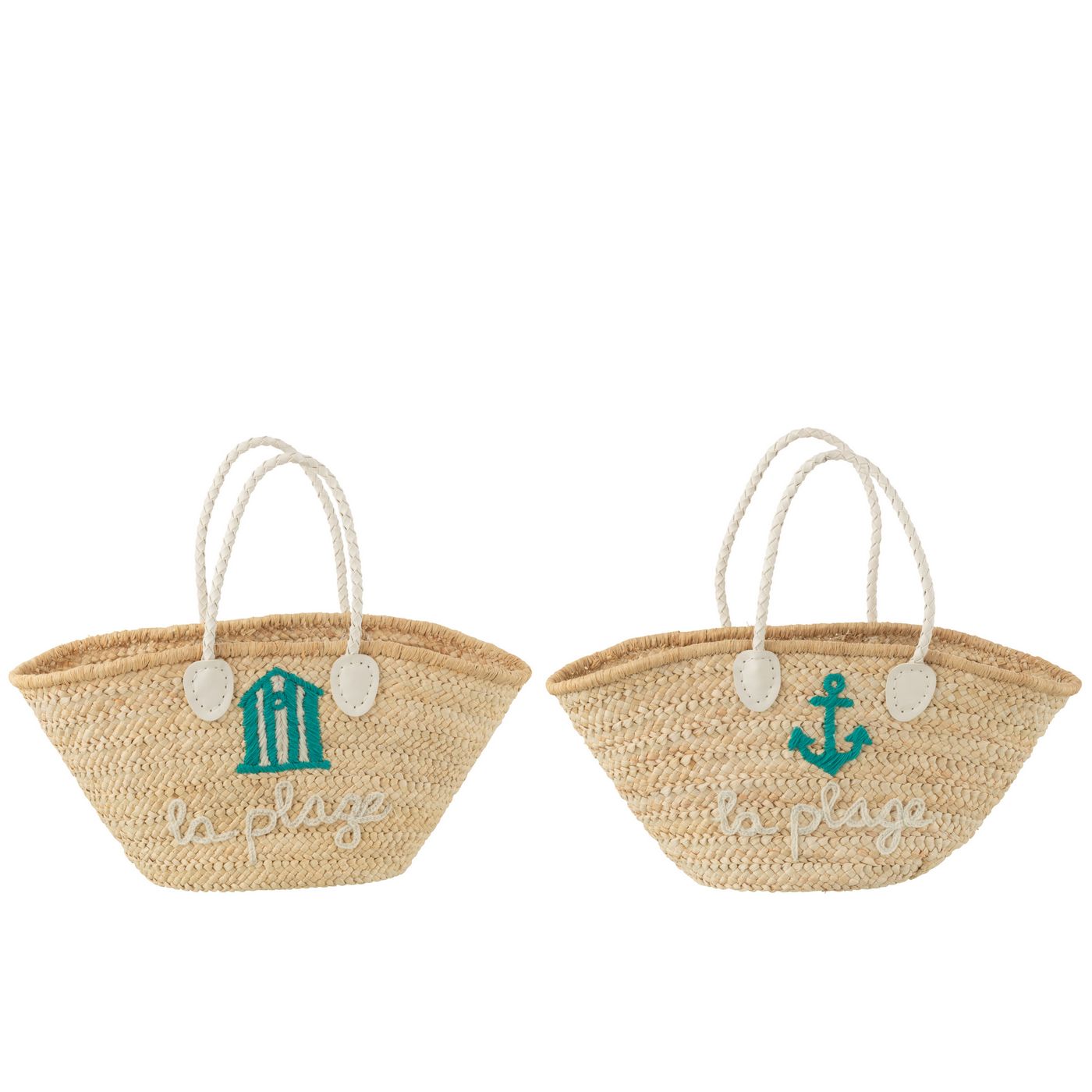 J Line Borsa Da Mare La Plage Mais Naturale/Bianco/Azzurro Assortimento Di 2