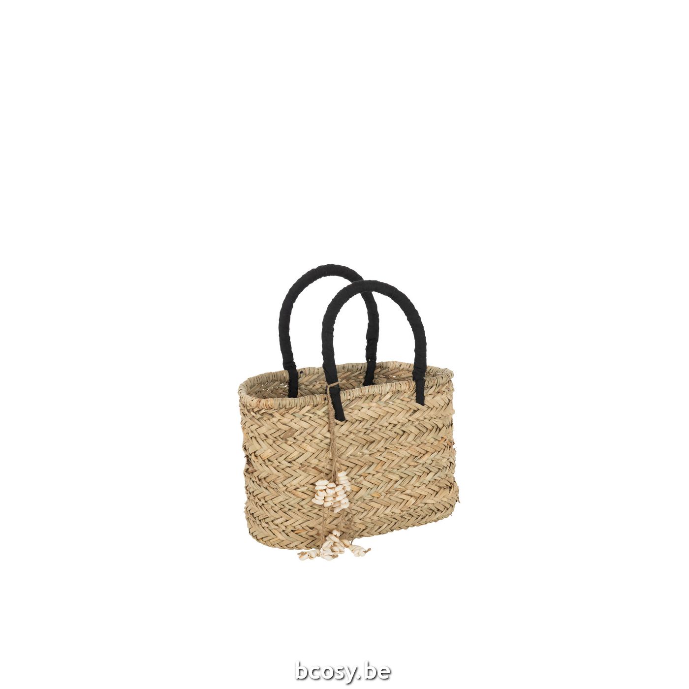 J-Line Strandtas Met Schelpen Zwart Handvatten Jute Naturel-Zwart Small L35xB20xH37 cm