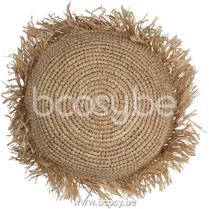 J-Line Kussen Jeff Rond Rafia Naturel Small L40xB40xH10 cm
