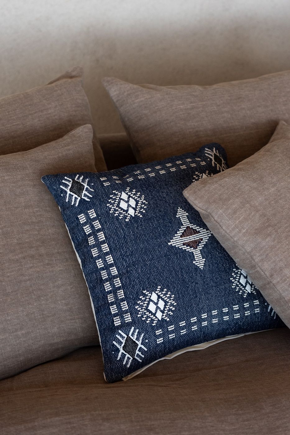 J Line Cushion Square Ethnic Patterns Cotton Dark Blue/White