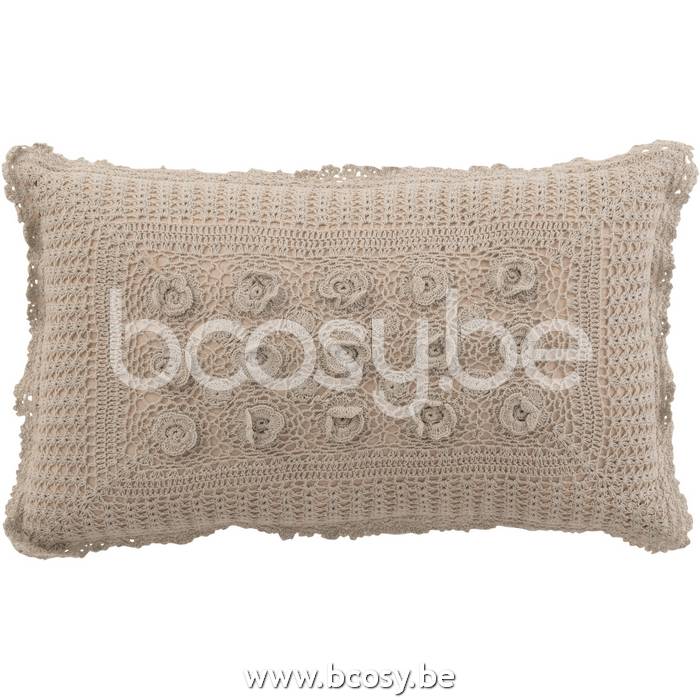 J-Line Kussen Rechthoek Kant Katoen Taupe L50xB30 cm