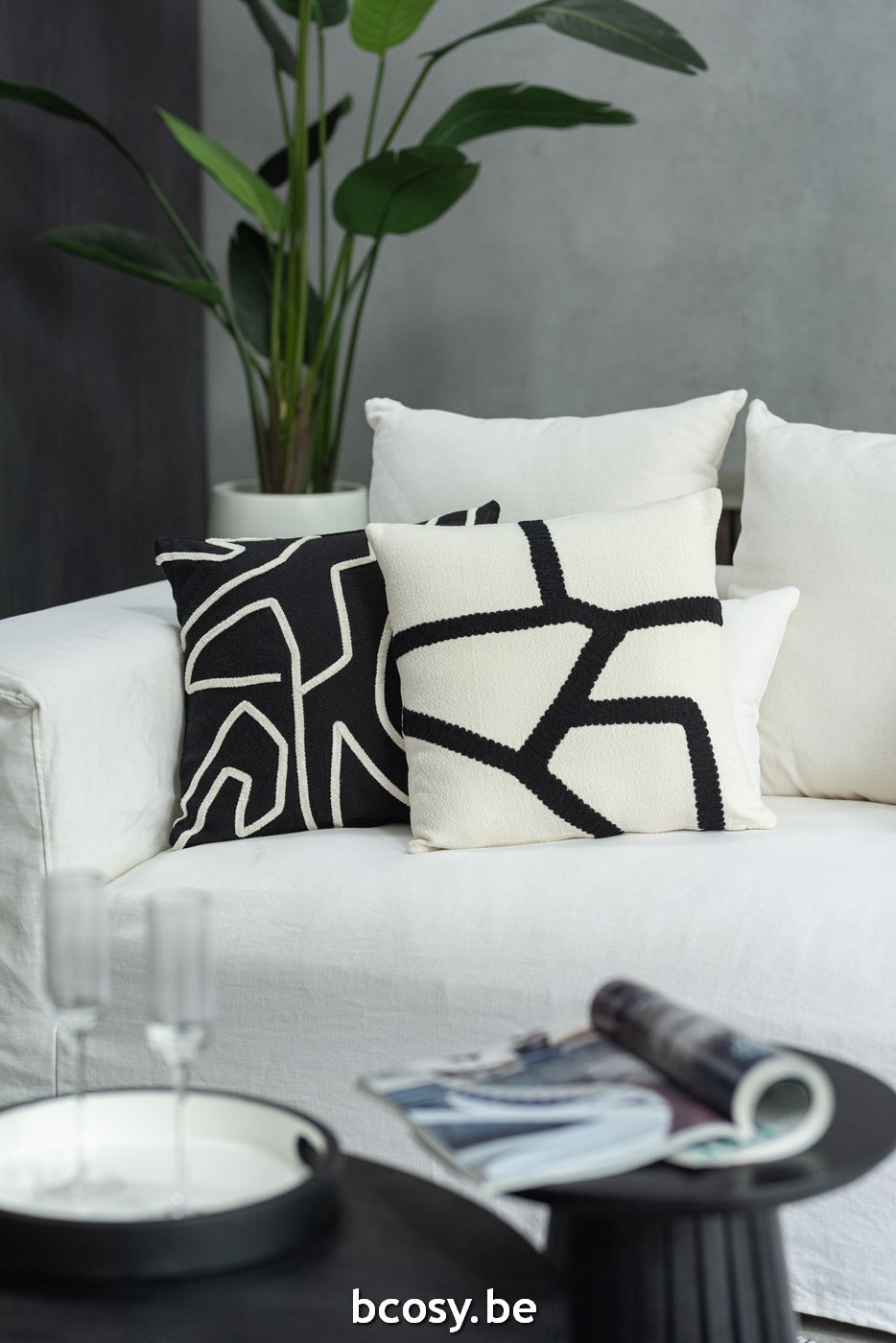 J-Line by Jolipa Coussin Ligne Textile Noir/Blanc