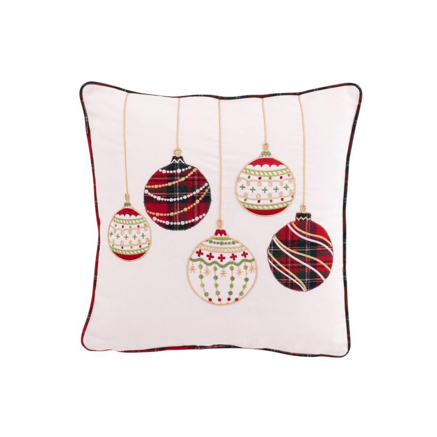 J Line Cushion Christmas Baubles Cotton White/Christmas Red