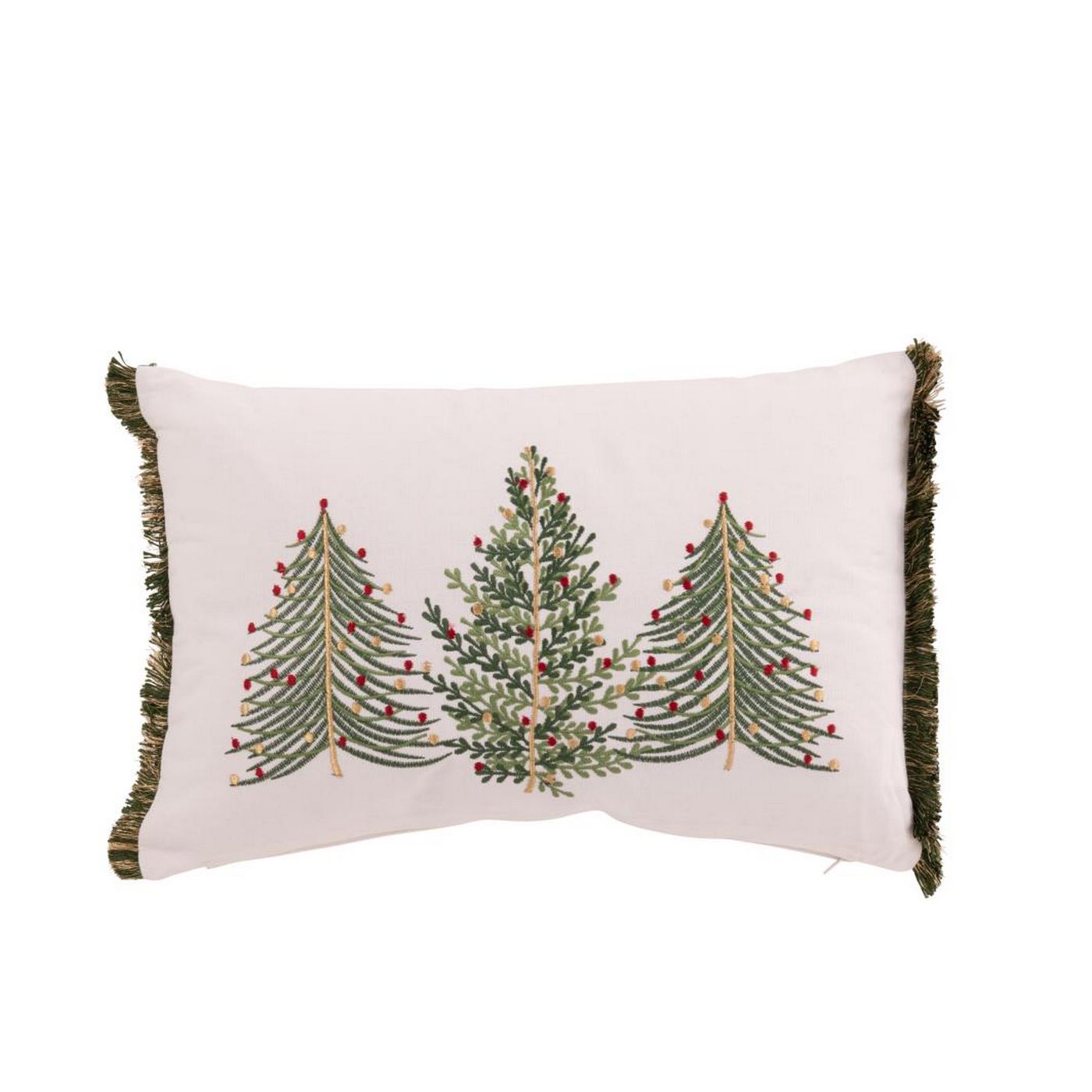 Jline Kussen Kerstbomen Katoen Wit Donkergroen