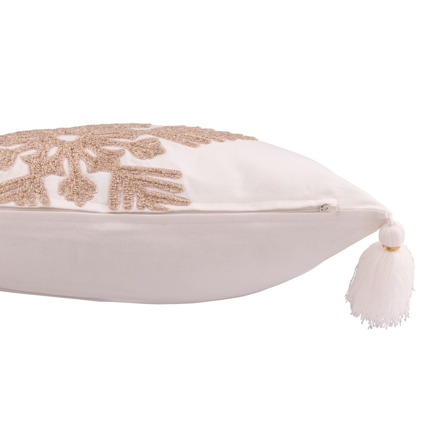 J Line Kissen Schneeflocke + Quasten Baumwolle Weiß/Beige