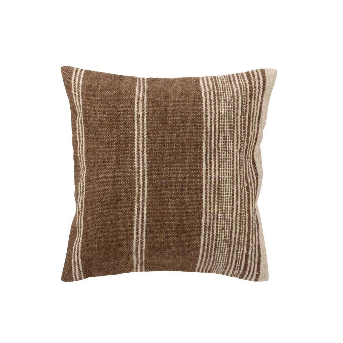 Jline Kussen Vierkant Gestreept Wol Donkerbruin Ecru