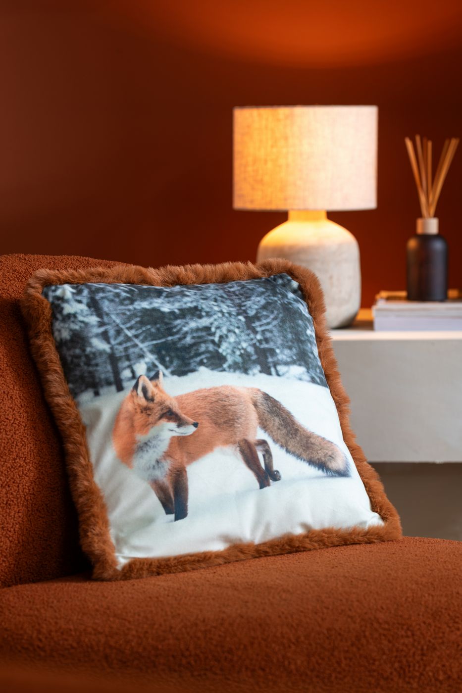 Jline Kussen Vos Polyester Bruin Cognac Small Assortiment Van 2