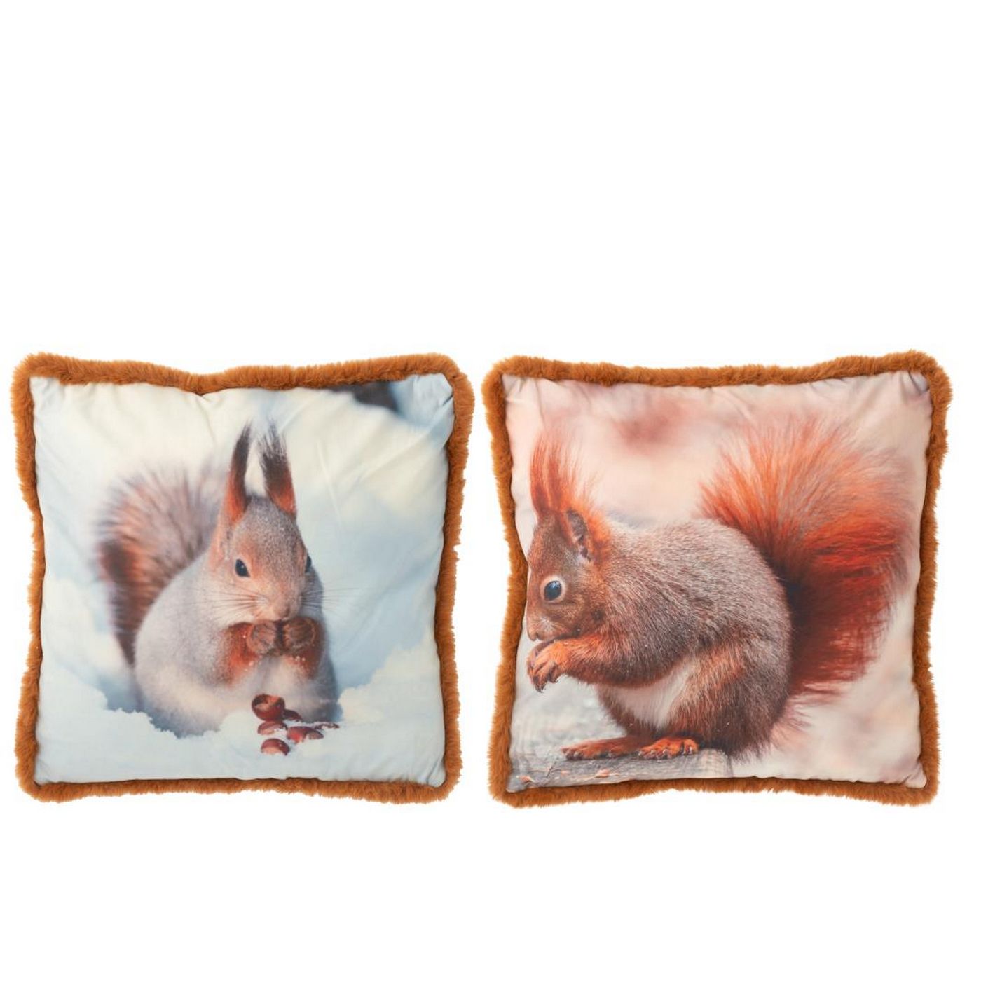 J Line Kissen Eichhörnchen Polyester Braun/Gebrochenes Weiß Large Sortiert 2