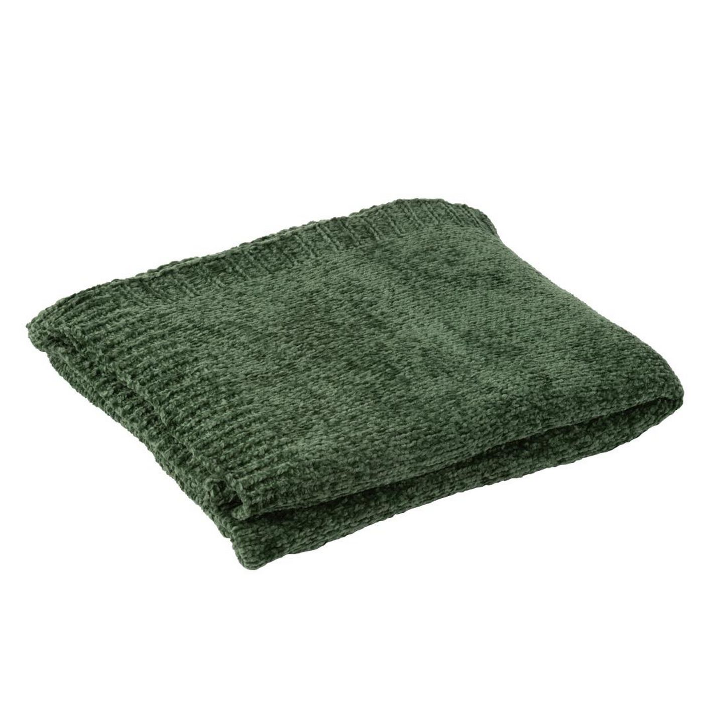 J-Line Deken Chenille Polyester Donkergroen L130xB170 cm