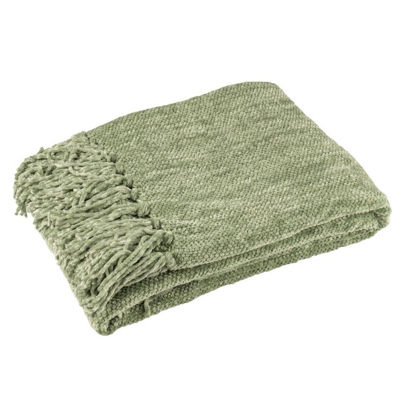 J-Line Deken Chenille Polyester Mosgroen L130xB170 cm
