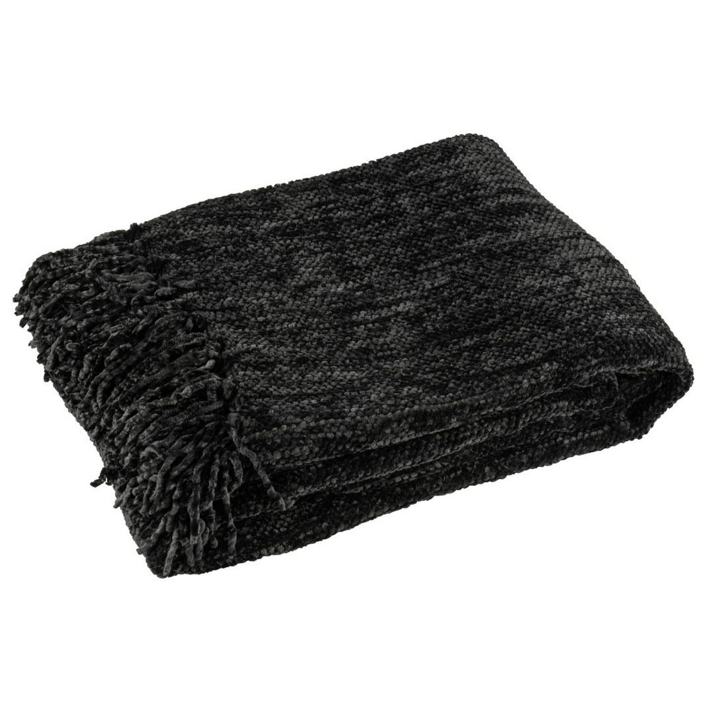 J-Line Deken Chenille Polyester Zwart L130xB170 cm