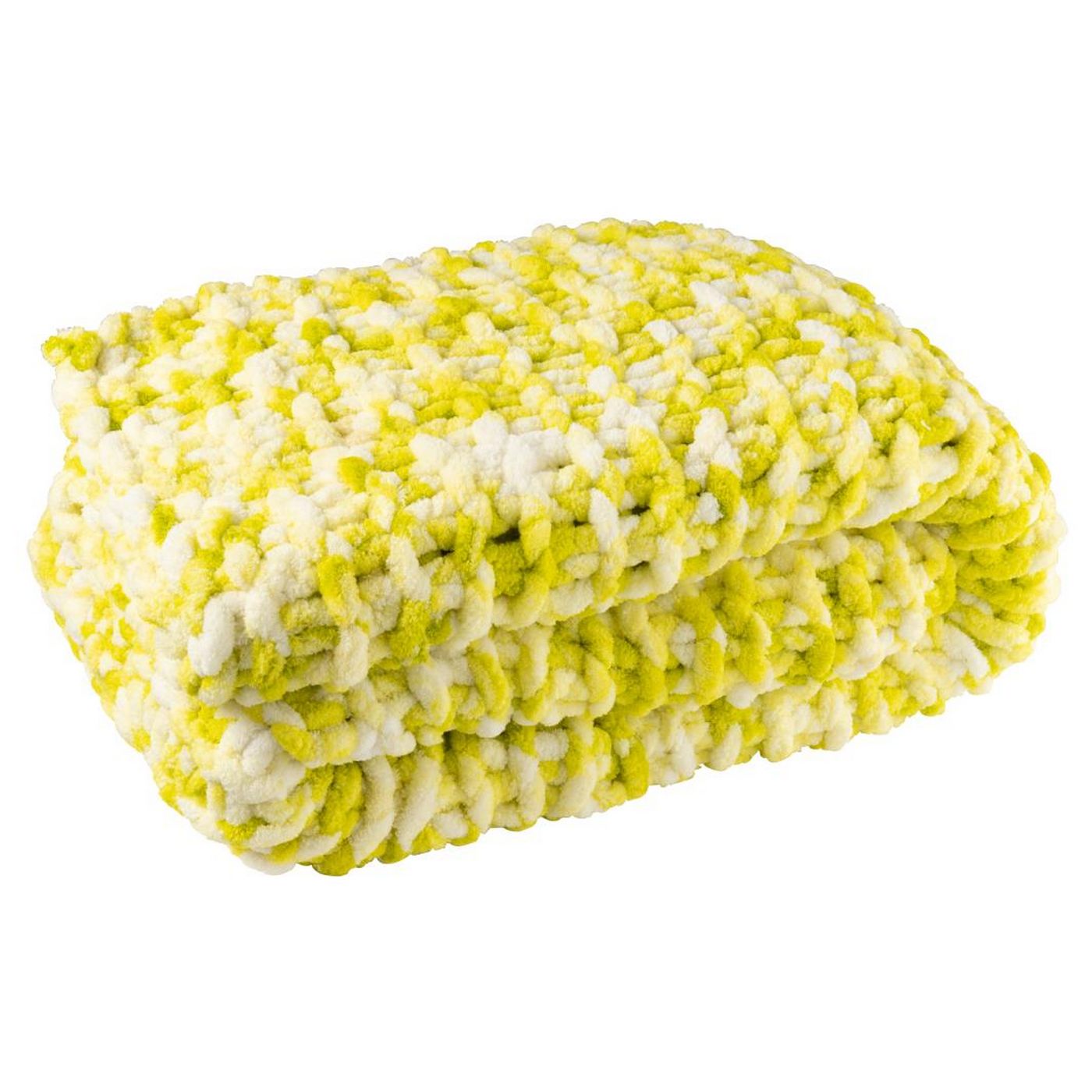 J-Line Deken Gebreeën Polyester Groen-Wit L130xB170xH4 cm